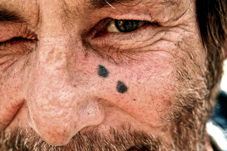 Where this tattoo originated I do non know. I would venture to estimate inmates on Devil's Island were decorating each others' cheekbones. In my frame of reference, postwar California prison house fashion (which in the jailhouse tattoo globe is like Florence during the Renaissance), the teardrop tattoo can mean a couple of things. The first thing I heard was that 1 teardrop meant you had washed time, usually at to the lowest degree one twelvemonth. Some people say that a teardrop ways that you killed someone. I remember ane of the reasons for the proliferation of teardrops is that they are a cakewalk to draw or manus poke. This is one of the reasons that information technology seems so pop among the youth potency ready. In this, the age of overkill, kids getting out of YA are likely to have numerous teardrops. If one teardrop is tough, how tough would you exist with v or 7?